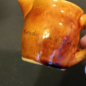 Today I have a VINTAGE Brown POTTERY PITCHER, from THE WONDER CAVE which is said to have closed in 1987. The cave has history starting in the early 1800s. The PITCHER is probably from the 1920s-1930s. It is in great condition NO chips cracks discoloration breaks or repairs. It has words written in GOLD, barely legible, "WONDER CAVE TENN". Refer to pictures in this listing.