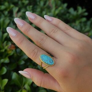 Beautiful 18k gold plated stainless steel water resistant ring. Adjustable. Hypoallergenic, lead, and nickel free.