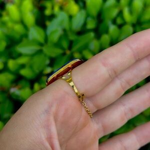 Beautiful 18k gold plated stainless steel water resistant adjustable ring. Hypoallergenic and lead/nickel free. Brand new boutique item!