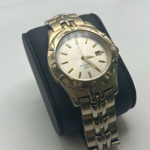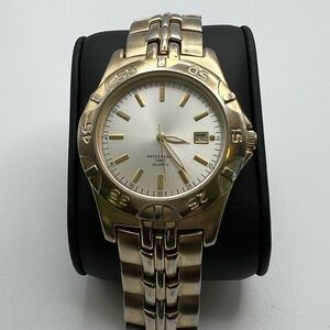 Great Water Resistant 100 FT Mens Watch Two Tone Metal Link Bracelet Working Perfectly