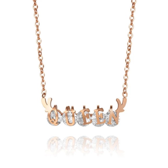 Water Resistant Rose Gold Queen of Diamond CZ Necklace, Pendant Necklace