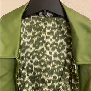 Hidden button front closure, pointed collar, princess seams, two front welt pockets 100% polyester