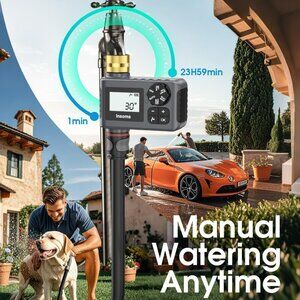 3 Watering Modes The hose timer for watering has 3 watering modes to meet your different watering plans. AUTO MODE, the garden hose timer will run automatically after setting the program, don't worry about not being able to water the plants when you're not at home. With Manual MODE, you can use faucet to do other things from 1min to 23hours59 mins without interrupting your schedule. Rain Delay Mode, in rainy day you can pause the watering schedule from 1 to 7 days, the schedule will be automatically resumed when rain delay function is end , helping to save water and bills.