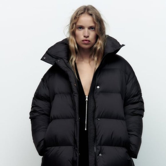 (NWOT) Lightweight, mid-length down coat with attached hood that can be hidden within the zippered collar. Relaxed fit style works year-round.
