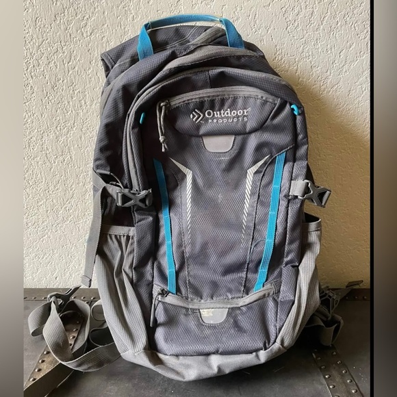 Outdoor Products water backpack. Has three compartments, with a water bladder in the very back that connect to the front through the straps. It’s in perfect condition, it’s just like the CamelBaks just an “off” brand.