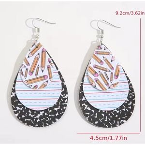 Water drop shape 3 layer faux leather light weight teacher dangle earrings