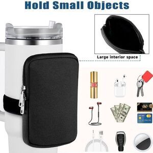 The pouch pocket with zipper is perfect for small belongings. Tumbler pouch with pocket holds keys,cards, lipsticks, chapsticks, earphones, IDs. Stay organized with a compact backpack for cup.