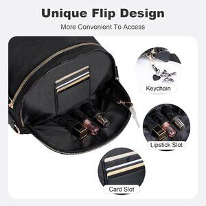 Features: This trendy crossbody boasts a flip interior design with dedicated card slots, lipstick compartments, and a sturdy keychain—keeping everything organized and easily accessible. It also has two back zippered pockets, one with interior slots for cards and cash, plus a quick-access pocket for your phone. The expandable bottom adds 50% more space when needed, making it as spacious as it is stylish. Made from water-resistant nylon, it’s easy to wipe down and built for daily wear or unexpected weather. The adjustable wider strap offers all-day comfort and versatile styling, whether you wear it higher or lower.