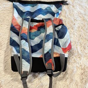 The WaterSeals Edge Backpack with Secura Lock Technology in River Blue, Red, or Teal is a large, multicolor backpack made from a blend of polyester and other materials. It features a hook and loop and zipper closure, as well as two dividers and three pockets, one of which is zipped. The backpack is insect repellent treated, waterproof, lightweight, and water resistant, making it ideal for summer backpacking adventures. With its stylish accents and unisex design, this backpack is a practical and durable option for outdoor enthusiasts.