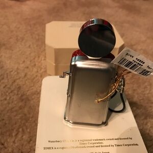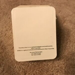 New in box. Waterbury Clock Co. vintage Gas Pump mini clock presented by Timex. Gas Pump is generic, no gas company logo or branding. Clock sits atop pump and needs battery power. Batteries not included. Just under 4-inches in height.