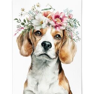 Watercolor Beagle Dog Wall Art Print – Floral Crown Dog Illustration | Unframed