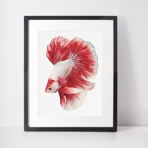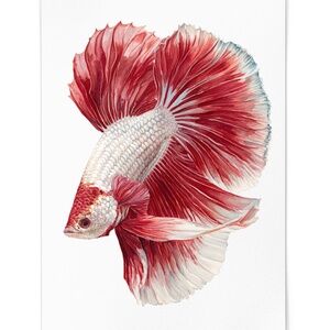 Watercolor Betta Fish Wall Art Print, Unframed - Vibrant Aquatic Elegance