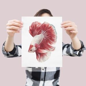 Dive into serene beauty with this Watercolor Betta Fish Wall Art Print, a stunning showcase of aquatic artistry and vibrant grace. This unframed print features a breathtaking watercolor illustration of a betta fish, capturing its flowing fins and iridescent colors in mesmerizing detail. Perfect for modern, tropical, or bohemian interiors, this artwork adds a touch of elegance and tranquility to living rooms, bedrooms, bathrooms, or offices. Printed on premium archival-grade paper, it ensures vivid colors and exceptional durability. Available in multiple sizes, this print pairs effortlessly with your favorite frame for a personalized look. Bring the enchanting allure of the underwater world into your space with this exquisite betta fish artwork! • Striking Design: Features a vibrant watercolor betta fish illustration • Available sizes: 11x14, 8x10, and 5x7 • Unframed for personalized framing options • Perfect for home decor, offices, or gifting • Eco-friendly, secure packaging