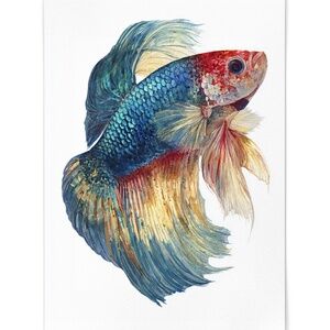 Watercolor Betta Fish Wall Art Print, Unframed - Vibrant Aquatic Elegance