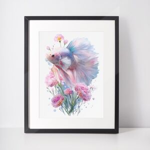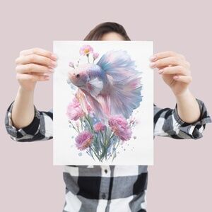 Immerse your space in vibrant beauty with this Watercolor Betta Fish with Flowers Wall Art Print, a captivating blend of aquatic grace and floral charm. This unframed print features a stunning watercolor illustration of a betta fish, its flowing fins adorned with delicate flowers, creating a harmonious fusion of nature’s elegance. Perfect for bohemian, tropical, or modern interiors, this artwork adds a whimsical yet sophisticated touch to living rooms, bedrooms, bathrooms, or offices. Printed on premium archival-grade paper, it ensures vivid colors and lasting durability. Available in multiple sizes, this print pairs effortlessly with your favorite frame for a personalized look. Bring the serene allure of an underwater garden into your home with this exquisite betta fish artwork! • Striking Design: Features a vibrant watercolor betta fish with flowers illustration • Available sizes: 11x14, 8x10, and 5x7 • Unframed for personalized framing options • Perfect for home decor, offices, or gifting • Eco-friendly, secure packaging