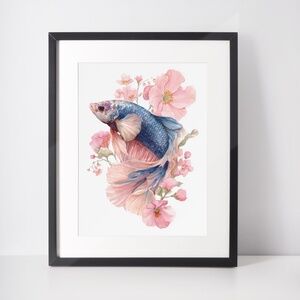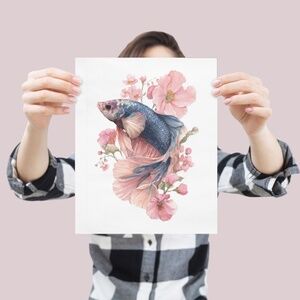 Immerse your space in vibrant beauty with this Watercolor Betta Fish with Flowers Wall Art Print, a captivating blend of aquatic grace and floral charm. This unframed print features a stunning watercolor illustration of a betta fish, its flowing fins adorned with delicate flowers, creating a harmonious fusion of nature’s elegance. Perfect for bohemian, tropical, or modern interiors, this artwork adds a whimsical yet sophisticated touch to living rooms, bedrooms, bathrooms, or offices. Printed on premium archival-grade paper, it ensures vivid colors and lasting durability. Available in multiple sizes, this print pairs effortlessly with your favorite frame for a personalized look. Bring the serene allure of an underwater garden into your home with this exquisite betta fish artwork!