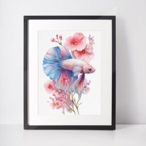Immerse your space in vibrant beauty with this Watercolor Betta Fish with Flowers Wall Art Print, a captivating blend of aquatic grace and floral charm. This unframed print features a stunning watercolor illustration of a betta fish, its flowing fins adorned with delicate flowers, creating a harmonious fusion of nature’s elegance. Perfect for bohemian, tropical, or modern interiors, this artwork adds a whimsical yet sophisticated touch to living rooms, bedrooms, bathrooms, or offices. Printed on premium archival-grade paper, it ensures vivid colors and lasting durability. Available in multiple sizes, this print pairs effortlessly with your favorite frame for a personalized look. Bring the serene allure of an underwater garden into your home with this exquisite betta fish artwork!
