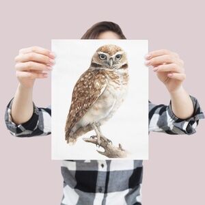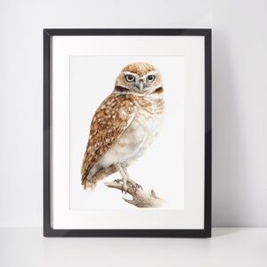 Discover the playful charm of the desert with this delightful watercolor portrait of a burrowing owl, its wide, curious eyes and delicate feather details captured in vibrant, flowing strokes. This unframed print features a lively watercolor illustration of a Burrowing Owl, showcasing its quirky personality and intricate plumage in rich, evocative hues. Perfect for rustic, modern, or nature-inspired interiors, this artwork brings a whimsical yet grounded touch to living rooms, bedrooms, offices, or cozy nooks. Crafted on premium archival-grade paper for vivid, fade-resistant colors, it’s available in multiple sizes. Pair it with your favorite frame for a custom look and let this endearing owl bring a spark of wilderness to your home!