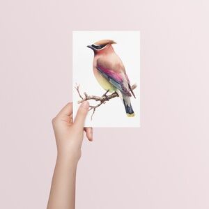 • Vibrant Design: Stunning watercolor Cedar Waxwing portrait