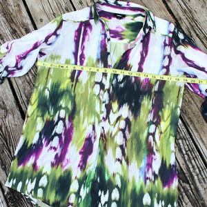 Mossimo Dressy Career Blouse in XS, Watercolor Pattern, Deep V-Neck with Collar. Good Condition.