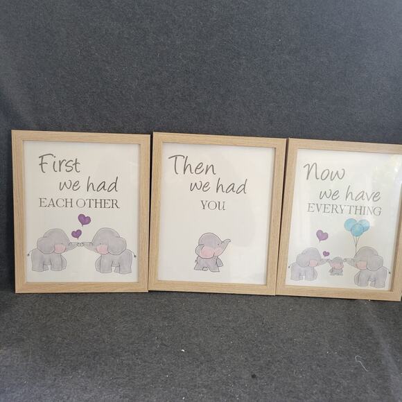 This Watercolor Elephant Family Framed Canvas Wall Art features a beautiful watercolor painting of an elephant family, perfect for a baby's room, nursery, or living space. The canvas is 8 x 10 inches in size and comes with oak-colored frames made of wood. The animal theme and animal print pattern add a charming touch to any room, making it suitable for both boys and girls. This wall hanging decor is a lovely addition to any home décor, capturing the essence of first we had each other in a unique and artistic way.