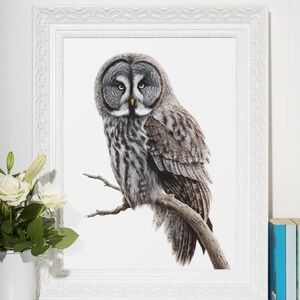 Watercolor Great Grey Owl Portrait Wall Art Print Poster, Unframed