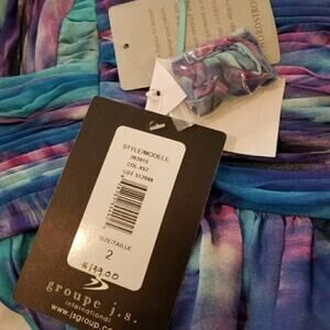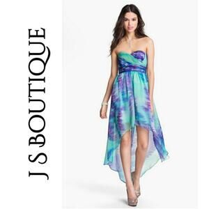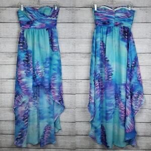 A gorgeous watercolor pattern with chiffon layers on a high-low design. Originally $199; tag removed.