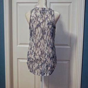 Sleeveless watercolor blouse with V-neck - slightly longer in back. 100% Polyester.