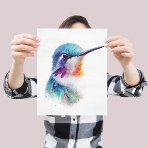 Brighten your home with the captivating beauty of this Watercolor Hummingbird Wall Art Print, a perfect blend of vibrant artistry and natural grace. This unframed print features a stunning watercolor illustration of a hummingbird, showcasing its shimmering feathers and delicate charm in vivid, flowing hues. Ideal for bohemian, modern, or nature-inspired interiors, this artwork adds a touch of whimsy and sophistication to living rooms, bedrooms, nurseries, or offices. Crafted on premium archival-grade paper, it ensures brilliant colors and exceptional durability. Available in multiple sizes, this print is easy to pair with your favorite frame for a customized look. Bring the fleeting magic of hummingbirds into your space with this enchanting wall art!