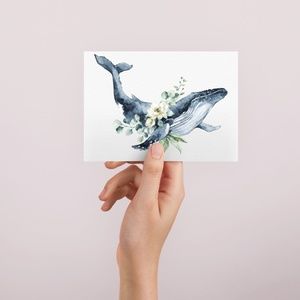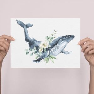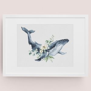 Watercolor Floral Humpback Whale Wall Art Illustration Print Poster Unframed