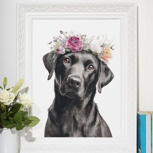 Celebrate the joyful spirit of the Labrador Retriever with a touch of bohemian flair in this Watercolor Black Labrador Retriever Dog with Flower Crown Portrait Wall Art Print. This unframed print features a stunning watercolor illustration of a Labrador Retriever adorned with a vibrant flower crown, blending its friendly charm with delicate floral beauty. Perfect for bohemian, rustic, or pet-inspired interiors, this artwork adds a whimsical yet sophisticated touch to living rooms, bedrooms, nurseries, or offices. Crafted on premium archival-grade paper, it ensures vivid colors and lasting durability. Available in multiple sizes, this print pairs seamlessly with your favorite frame for a personalized look. Bring the heartwarming essence of the Labrador Retriever and a burst of floral charm into your home with this enchanting portrait! • Heartwarming Design: Features a vibrant watercolor Labrador Retriever portrait • Available sizes: 11x14, 8x10, and 5x7 • Unframed for personalized framing options • Perfect for home decor, offices, or gifting • Eco-friendly, secure packaging
