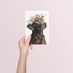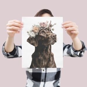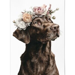 Celebrate the joyful spirit of the Labrador Retriever with a touch of bohemian flair in this Watercolor Brown Labrador Retriever Dog with Flower Crown Portrait Wall Art Print. This unframed print features a stunning watercolor illustration of a Labrador Retriever adorned with a vibrant flower crown, blending its friendly charm with delicate floral beauty. Perfect for bohemian, rustic, or pet-inspired interiors, this artwork adds a whimsical yet sophisticated touch to living rooms, bedrooms, nurseries, or offices. Crafted on premium archival-grade paper, it ensures vivid colors and lasting durability. Available in multiple sizes, this print pairs seamlessly with your favorite frame for a personalized look. Bring the heartwarming essence of the Labrador Retriever and a burst of floral charm into your home with this enchanting portrait!