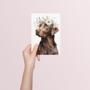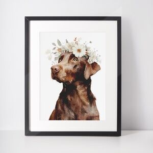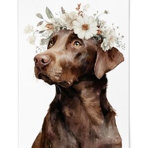 Celebrate the joyful spirit of the Labrador Retriever with a touch of bohemian flair in this Watercolor Brown Labrador Retriever Dog with Flower Crown Portrait Wall Art Print. This unframed print features a stunning watercolor illustration of a Labrador Retriever adorned with a vibrant flower crown, blending its friendly charm with delicate floral beauty. Perfect for bohemian, rustic, or pet-inspired interiors, this artwork adds a whimsical yet sophisticated touch to living rooms, bedrooms, nurseries, or offices. Crafted on premium archival-grade paper, it ensures vivid colors and lasting durability. Available in multiple sizes, this print pairs seamlessly with your favorite frame for a personalized look. Bring the heartwarming essence of the Labrador Retriever and a burst of floral charm into your home with this enchanting portrait!