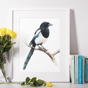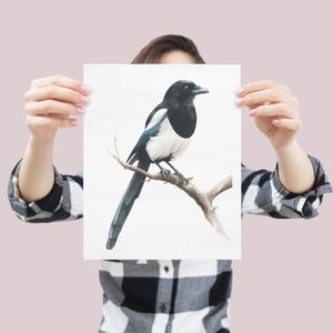 Watercolor Magpie Bird Wall Art Print, Unframed - Elegant Nature-Inspired Decor