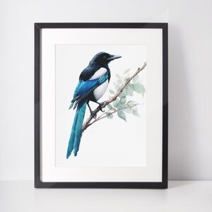 Watercolor Magpie Bird Wall Art Print, Unframed - Elegant Nature-Inspired Decor
