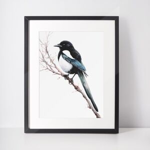 Watercolor Magpie Bird Wall Art Print, Unframed - Elegant Nature-Inspired Decor