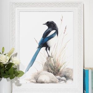 Watercolor Magpie Bird Wall Art Print, Unframed - Elegant Nature-Inspired Decor