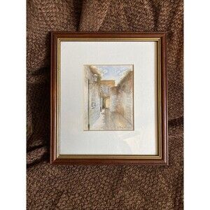 Watercolor Matted Framed Signed 8x10 Signed A Bau Street scene