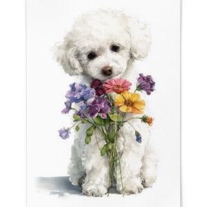Add a touch of playful elegance to your decor with this Watercolor Miniature Poodle with Flowers Wall Art Print, a delightful fusion of canine charm and floral beauty. This unframed print features a vibrant watercolor illustration of a Miniature Poodle adorned with delicate flowers, its perky demeanor and fluffy coat enhanced by soft, blooming hues. Perfect for bohemian, modern, or pet-inspired interiors, this artwork brings whimsical sophistication to living rooms, bedrooms, nurseries, or offices. Crafted on premium archival-grade paper for vivid, fade-resistant colors, it’s available in multiple sizes. Pair it with your favorite frame for a custom look and let this charming poodle bloom in your home!