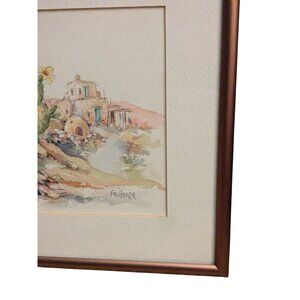This professionally framed watercolor captures the essence of the Southwest, featuring rich vegetable colors and intricate details. Anne Faulkner's work is renowned for depicting historical and impressionistic scenes. Crafted with a copper frame, this piece adds a refined touch to any art collection. See 2nd listing for addition work from this artist. Can display as a set if you purchase both.