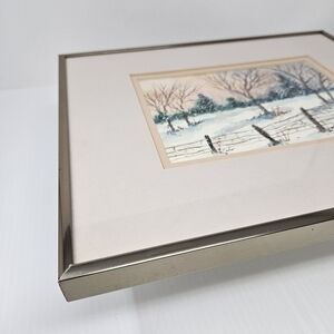 Watercolor Painting Winter Country Scene With Fence & Snow Artist Signed 12 x 10