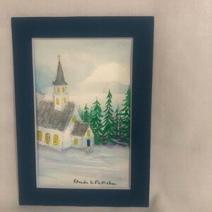 Watercolor Painting of Church in Matte