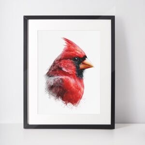 Watercolor Red Cardinal Bird Portrait Wall Art Print Unframed