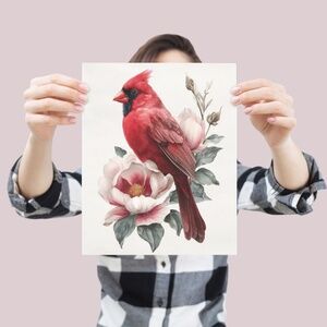 Bring a touch of nature’s elegance to your home with this stunning watercolor wall art print featuring a graceful red cardinal perched among vibrant flowers. The delicate brushstrokes and soft hues capture the bird’s subtle beauty and the intricate details of blooming petals, creating a serene and timeless piece. Perfect for bird lovers, art enthusiasts, or anyone seeking to add a charming, nature-inspired accent to their space, this unframed wall art print offers versatile display options for any room—be it a cozy living area, bedroom, or office.