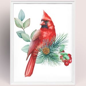 Watercolor Red Cardinal Wall Art Illustration Print Poster Unframed