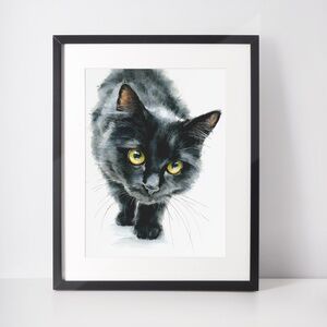 Elevate your decor with this enchanting watercolor black cat wall art print.
