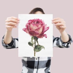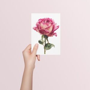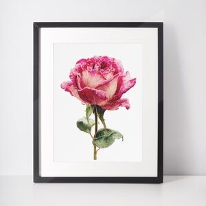Watercolor Single Pink Rose Wall Art Print, Unframed - Delicate Floral Elegance