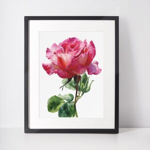 Infuse your space with the gentle beauty of this Watercolor Single Pink Rose Wall Art Print, a captivating showcase of floral artistry. This unframed print features a vibrant watercolor illustration of a single pink rose, its soft petals and subtle hues rendered in delicate, flowing strokes. Perfect for romantic, modern, or bohemian interiors, this artwork adds a touch of serene sophistication to living rooms, bedrooms, bathrooms, or offices. Crafted on premium archival-grade paper for vivid, fade-resistant colors, it’s available in multiple sizes. Pair it with your favorite frame for a custom look and let this charming pink rose bloom in your home!