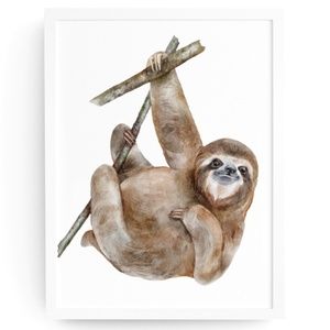 Watercolor Sloth Illustration Wall Art Print Poster Unframed