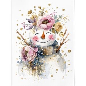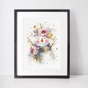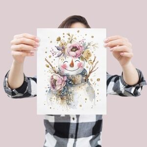Embrace the magic of winter with a touch of floral elegance in this enchanting watercolor portrait of a snowman adorned with gorgeous flowers. This unframed print captures the playful charm of a snowman, its cheerful form brought to life with vibrant blooms and delicate, flowing strokes. Perfect for cozy, rustic, or modern interiors, this artwork adds a whimsical yet sophisticated touch to living rooms, nurseries, bedrooms, or festive seasonal displays. Printed on premium archival-grade paper with vivid, fade-resistant colors, this piece invites warmth and wonder into your space. Pair it with your favorite frame for a custom look and let this charming snowman bloom with winter’s joyful spirit in your home!